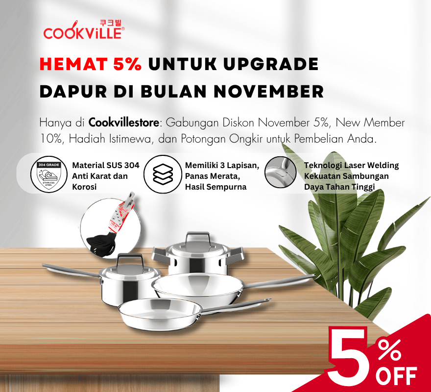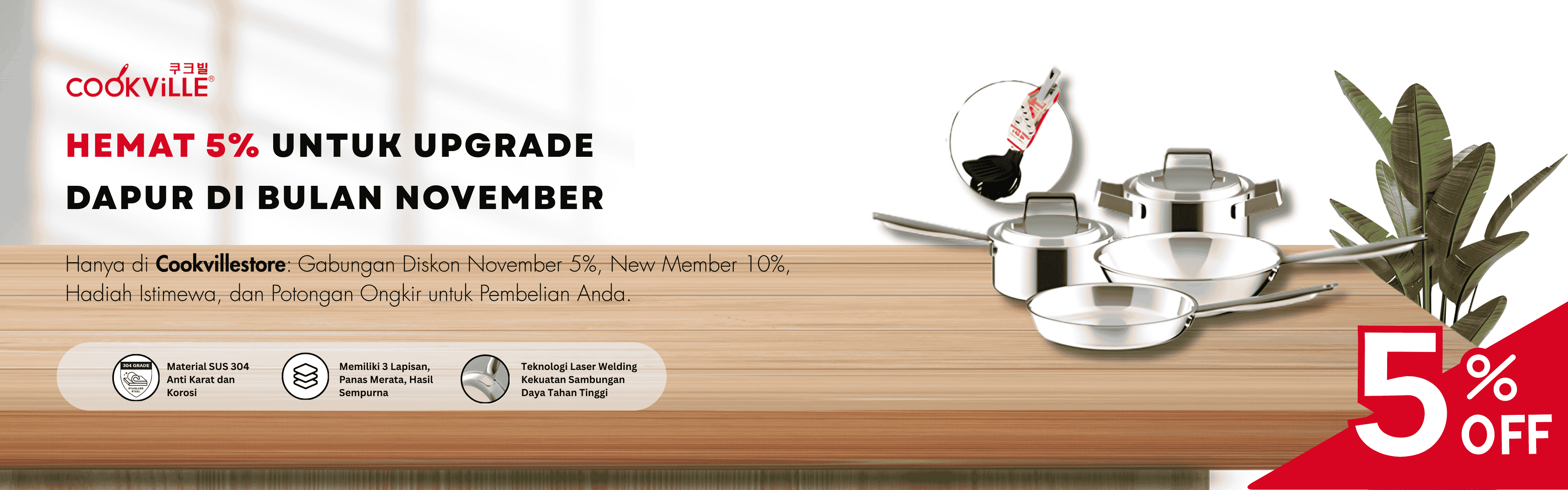 Dapatkan diskon tambahan 5% tanpa minimum belanja di cookvillestore.com