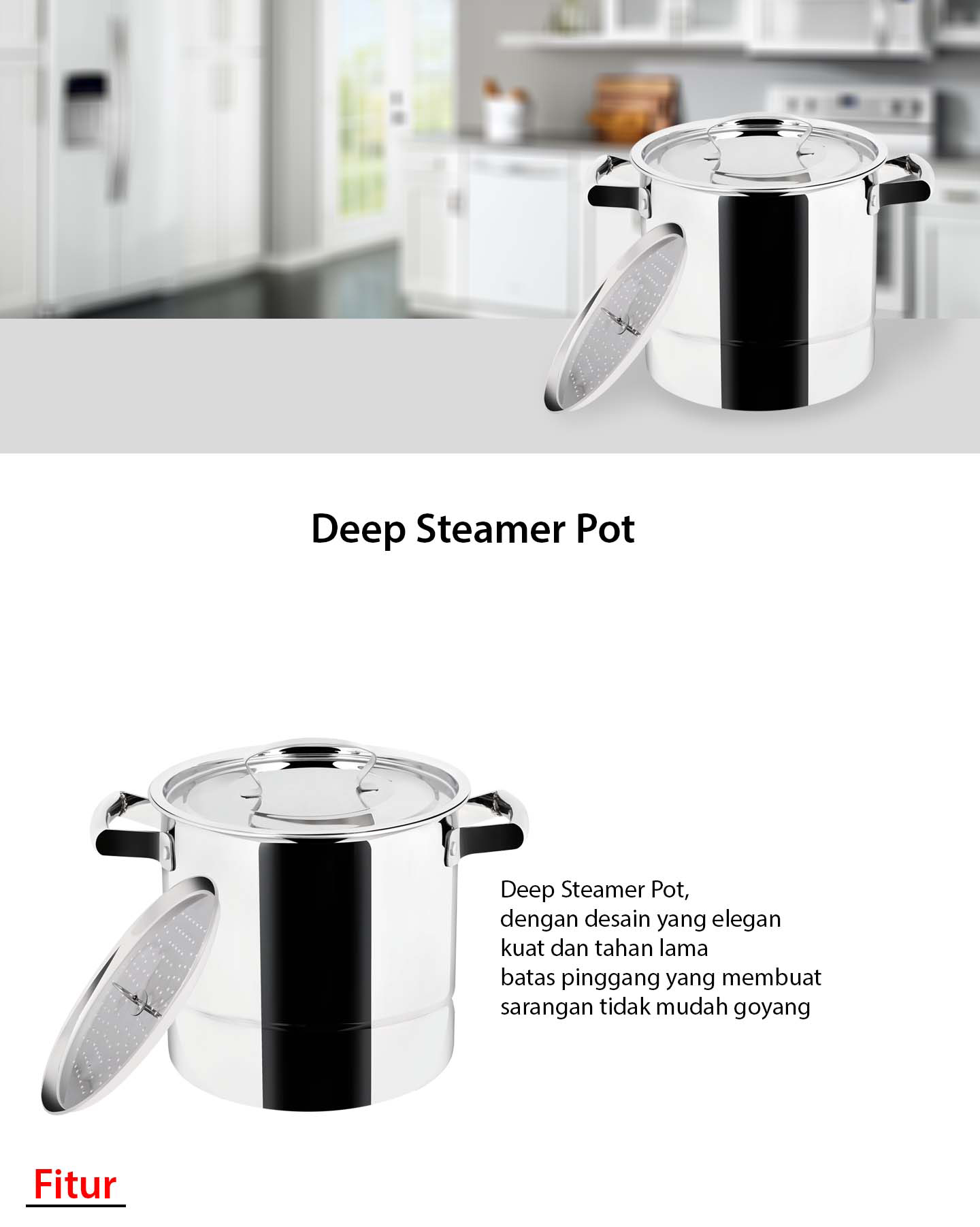 - Desain Deep Pot – Cocok untuk mengukus berbagai jenis makanan dalam jumlah besar.