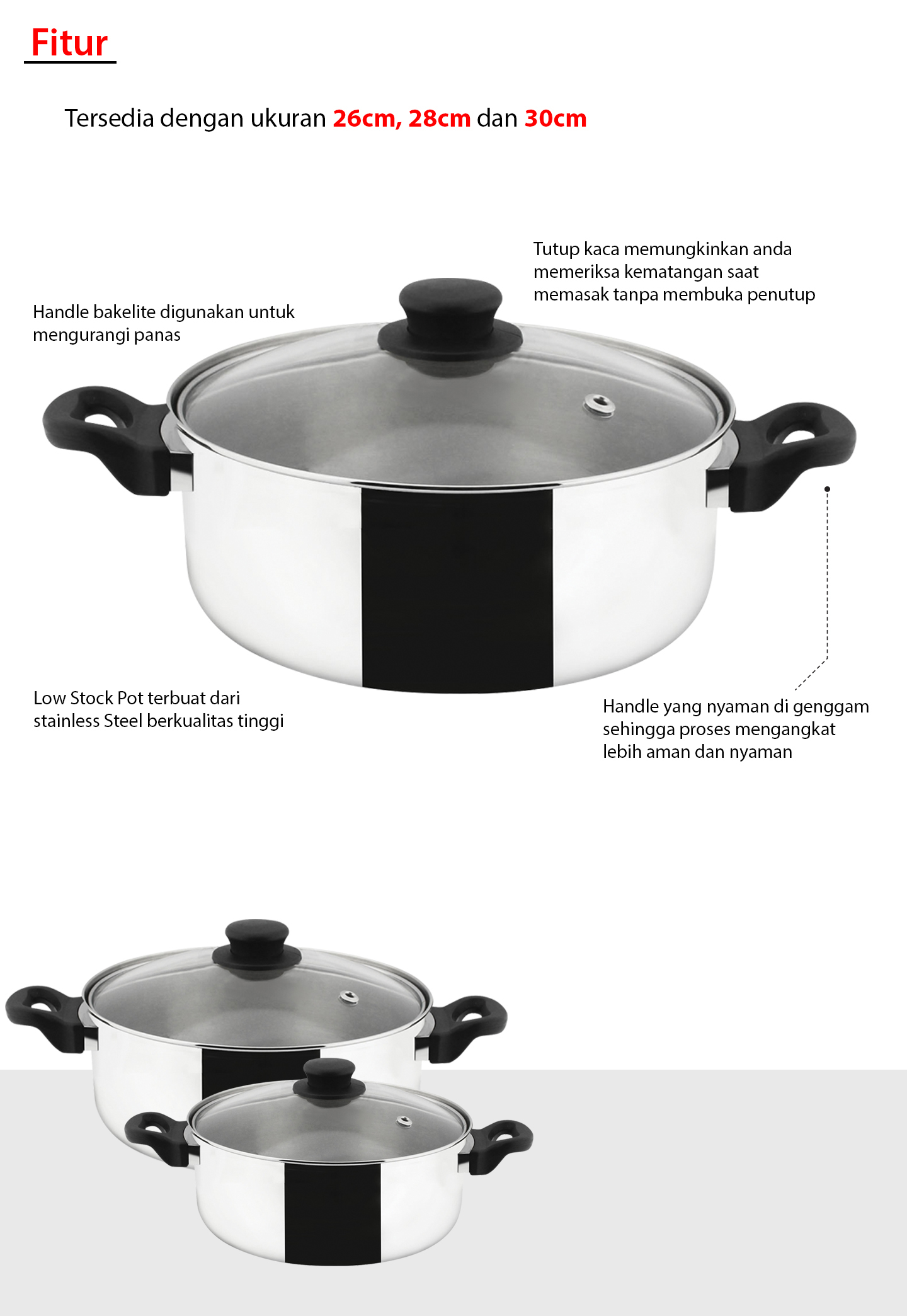 Cookville Low Stock Pot adalah panci berkualitas, Produk ini cocok digunakan untuk memasak berbagai jenis makanan mulai dari sup hingga masakan berkuah.
